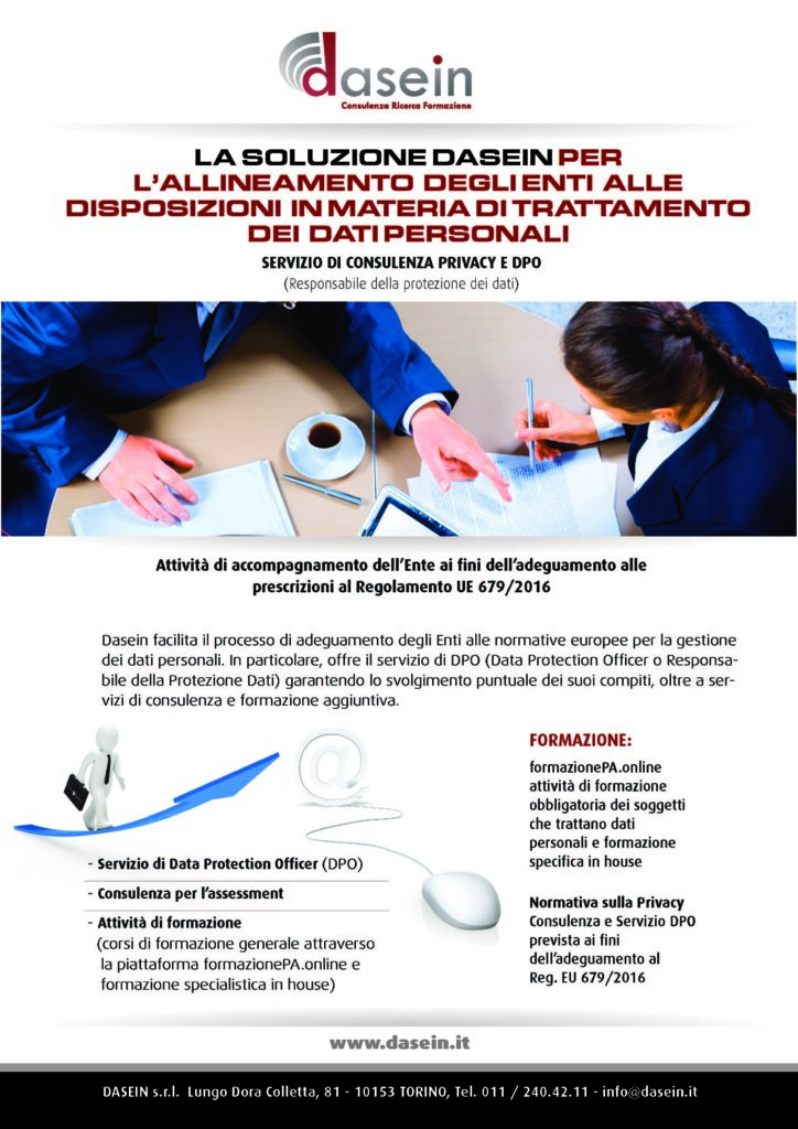 Consulente Dasein srl. DPO/Responsabile della Protezione Dati. Programmazione. Anticorruzione, Trasparenza. Buone prassi negli Enti Locali.